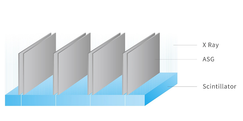 Anti-scattering grid (ASG) plays a key role in detector’s sampling due to the fact that it is able to effectively absorb the scattering X-ray. Unlike the traditional design of ASG that adjacent modules share the same grid, MinFound EAA ASG utilizes separate grid between adjacent modules, significantly reducing the possible expansion of the grid caused by the heat, thus decreasing the presence of artifacts in images.