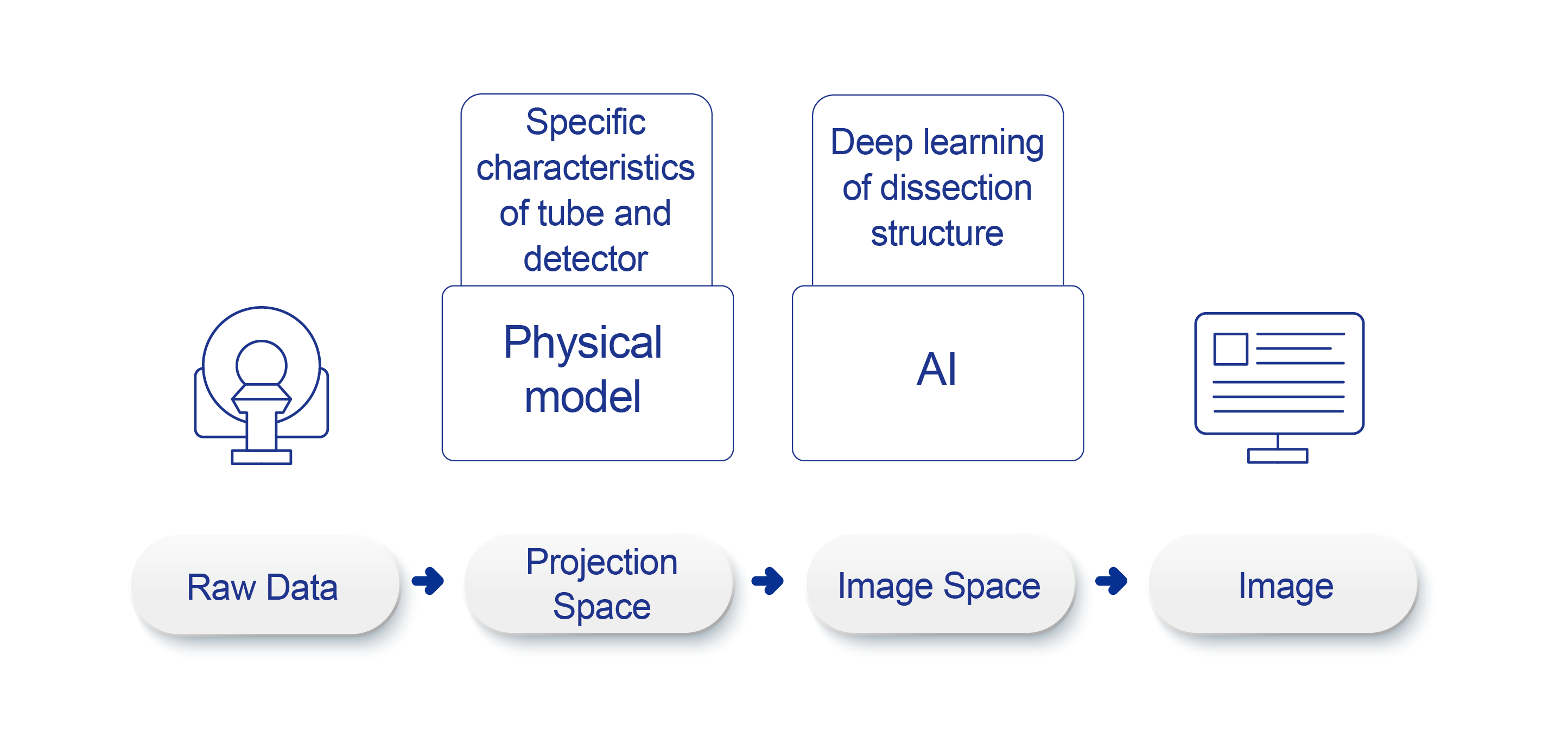 NDI NanoDose Iteration Algorithm (NDI) is an innovative iterative technique for image reconstruction that takes full advantages of deep learning in anatomical structure in image space as well as model-driven iteration involving tube and detector in projection space, with the aim to generate sharp and high-resolution images at the lowest possible dose.
