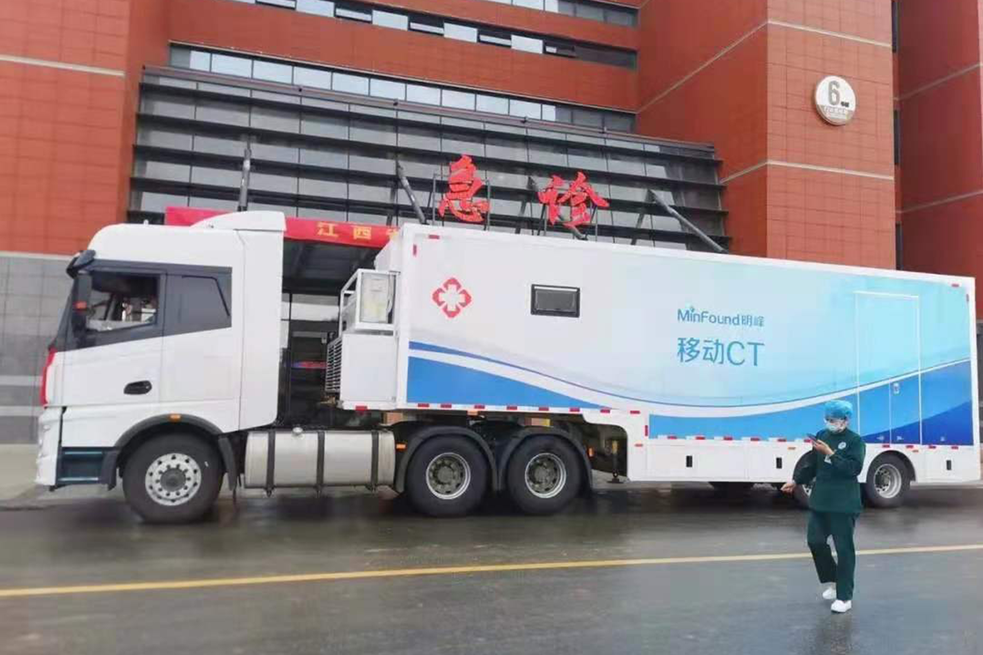 ▲明峰醫(yī)療半掛車CT在南昌大學(xué)第一附屬醫(yī)院使用