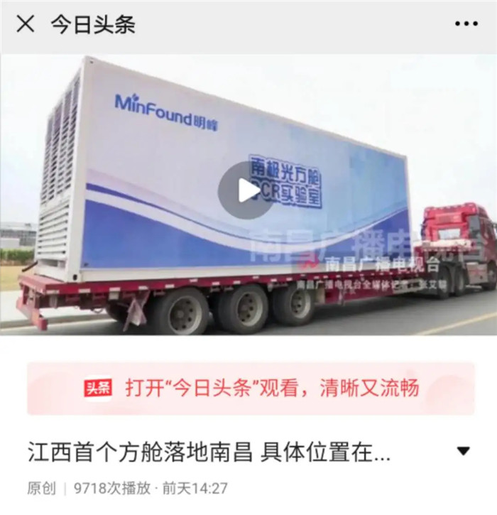 明峰醫(yī)療產(chǎn)品部負(fù)責(zé)人介紹,方艙P(yáng)CR實(shí)驗(yàn)室又叫基因擴(kuò)增實(shí)驗(yàn)室(PCR是Polymerase Chain Reaction聚合酶鏈?zhǔn)椒磻?yīng)的縮寫)。明峰醫(yī)療創(chuàng)新研發(fā)的南極光方艙P(yáng)CR實(shí)驗(yàn)室,箱體長3米、寬9米、高3.2米,可以用來快速檢測新冠病毒,45分鐘完成篩查,每次可達(dá)1000次以上的樣本檢測量。打破了傳統(tǒng)核酸檢測實(shí)驗(yàn)室選址難、建設(shè)周期長、施工難度大等問題。在當(dāng)前疫情防控中,可使核酸檢測更加高效。