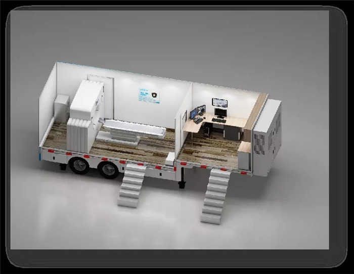 這輛車配備了車載低劑量64排128層螺旋CT機(jī),搭載了AI技術(shù),同時(shí)擁有5G影像數(shù)據(jù)快速傳輸技術(shù)等功能。