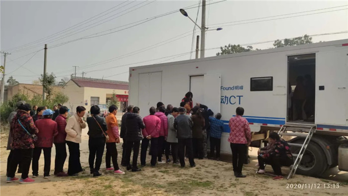11月12日,明峰醫(yī)療的篩查車又來到咸陽(yáng),聯(lián)合延安大學(xué)咸陽(yáng)醫(yī)院組建的多學(xué)科專家團(tuán)隊(duì)在乾縣大坡口村,為當(dāng)?shù)卮迕裉峁┟赓M(fèi)的肺癌篩查。此次活動(dòng)共計(jì)為139名百姓進(jìn)行了CT檢查,受到了當(dāng)?shù)匕傩盏母叨荣潛P(yáng)。