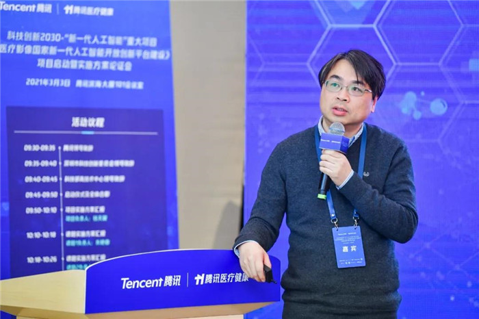 《醫(yī)療影像國家新一代人工智能開放創(chuàng)新平臺建設(shè)》項目負(fù)責(zé)人、騰訊醫(yī)療技術(shù)委員會主任、騰訊覓影總經(jīng)理錢天翼博士介紹:眼下我國醫(yī)療AI行業(yè)正快速發(fā)展,其中醫(yī)療影像AI已成為補(bǔ)足醫(yī)學(xué)影像人才缺口、提升醫(yī)療服務(wù)效率和診斷水平、提升我國優(yōu)質(zhì)醫(yī)療資源可及性的破局關(guān)鍵。不過,醫(yī)療AI領(lǐng)域同時也面臨產(chǎn)業(yè)起步成本高、產(chǎn)品研發(fā)不規(guī)范、醫(yī)療AI落地難等三大卡脖子問題,只有通過構(gòu)建共性技術(shù)開放平臺和產(chǎn)學(xué)研合作平臺化降低產(chǎn)業(yè)門檻、建立技術(shù)標(biāo)準(zhǔn)體系及共享基礎(chǔ)資源庫等行業(yè)支撐體系、促進(jìn)產(chǎn)業(yè)上下游合作,打通科研模型到臨床應(yīng)用的高速通道,才能實現(xiàn)醫(yī)療影像AI在更多病種、更多層級醫(yī)療機(jī)構(gòu)的規(guī)?;瘧?yīng)用以及可持續(xù)發(fā)展。