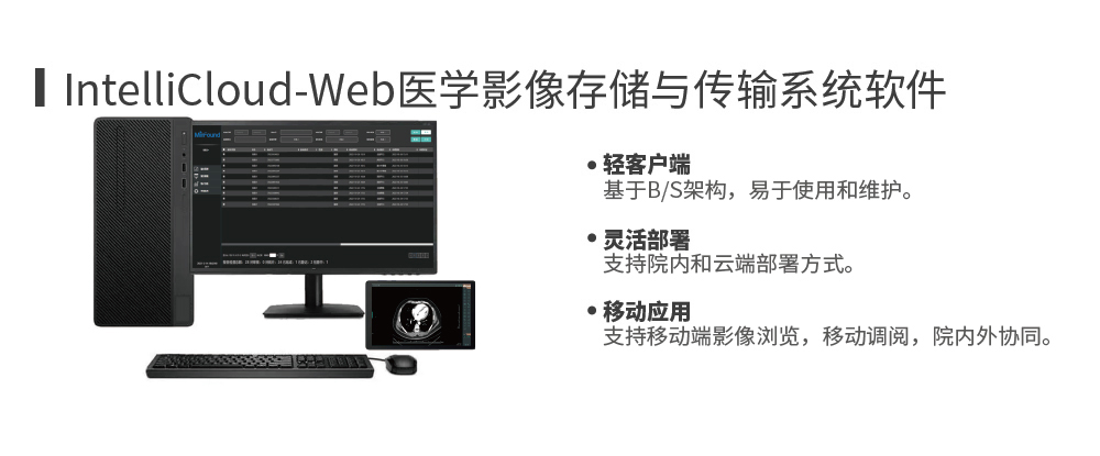 云儲(chǔ)存、區(qū)域控制、資料共享、數(shù)據(jù)服務(wù)、大數(shù)據(jù)挖掘、智能輔助、電子膠片、影像傳輸、遠(yuǎn)程云會(huì)診/診斷